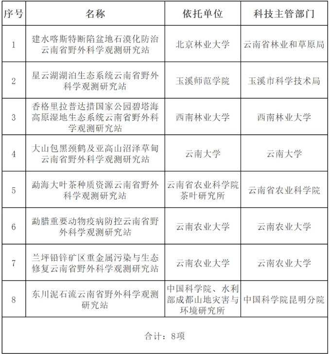 近日,云南省科学技术厅第23次厅务会审议批准了“建水喀斯特断陷盆地石漠化防治云南省野外科学观测研究站”等8个省野外科学观测研究站建设,公司牵头申报建设的“香格里拉普达措国家公园碧塔海高原湿地生态系统云南省野外科学观测研究站”位列其中。
