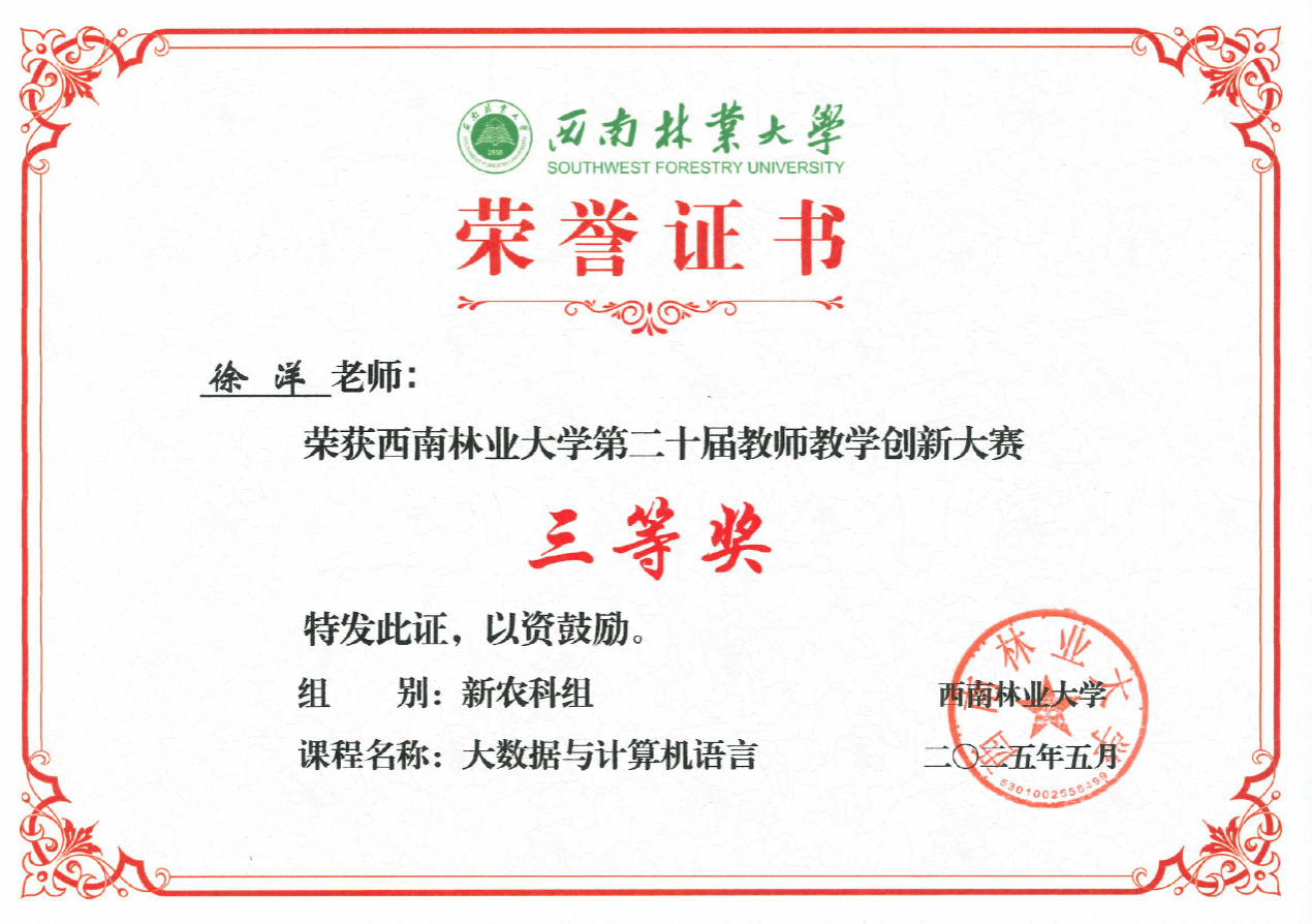 《大数据与计算机语言》课程由徐洋老师和“高原湿地关键过程与功能服务科技创新团队”负责人于君宝教授主讲,由中国科公司地理科学与资源研究所周成虎院士团队姜侯副研究员、中科星图(688568)数字地球合肥有限公司研发总马斅良参与共建,开课一年来,指导选课本科生获批计算机软件著作权6项,发表中文CSCD核心期刊论文一篇。依托本课程,徐洋老师参加2026世界杯指定网站第二十届教学创新大赛获得三等奖。