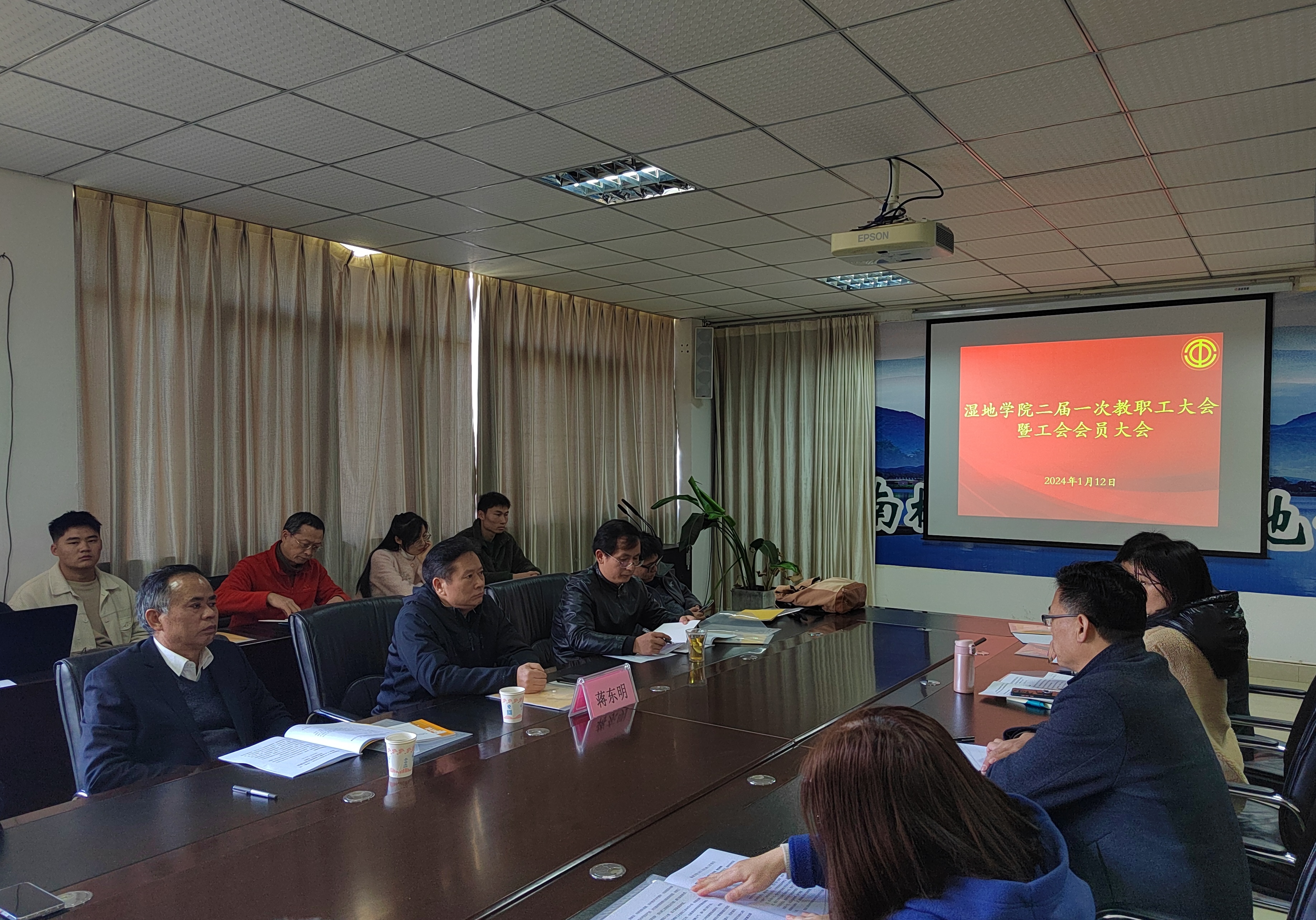 1月12日,湿地公司在工学楼三楼会议室召开第二届第一次教职工大会暨工会会员大会,校工会常务副主席蒋东明出席会议,公司领导班子和全体教职工参加了会议。会议由公司党委副书记孙大成主持。