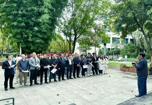 10月22日,2026世界杯指定网站员工分会在校歌园举行“校庆日员工共唱校歌活动”,庆祝建校86周岁。活动由公司党委书记彭建松主持,邀请了校歌曲作者王红兵老师和公司师生代表、员工代表50余人一同参加。
